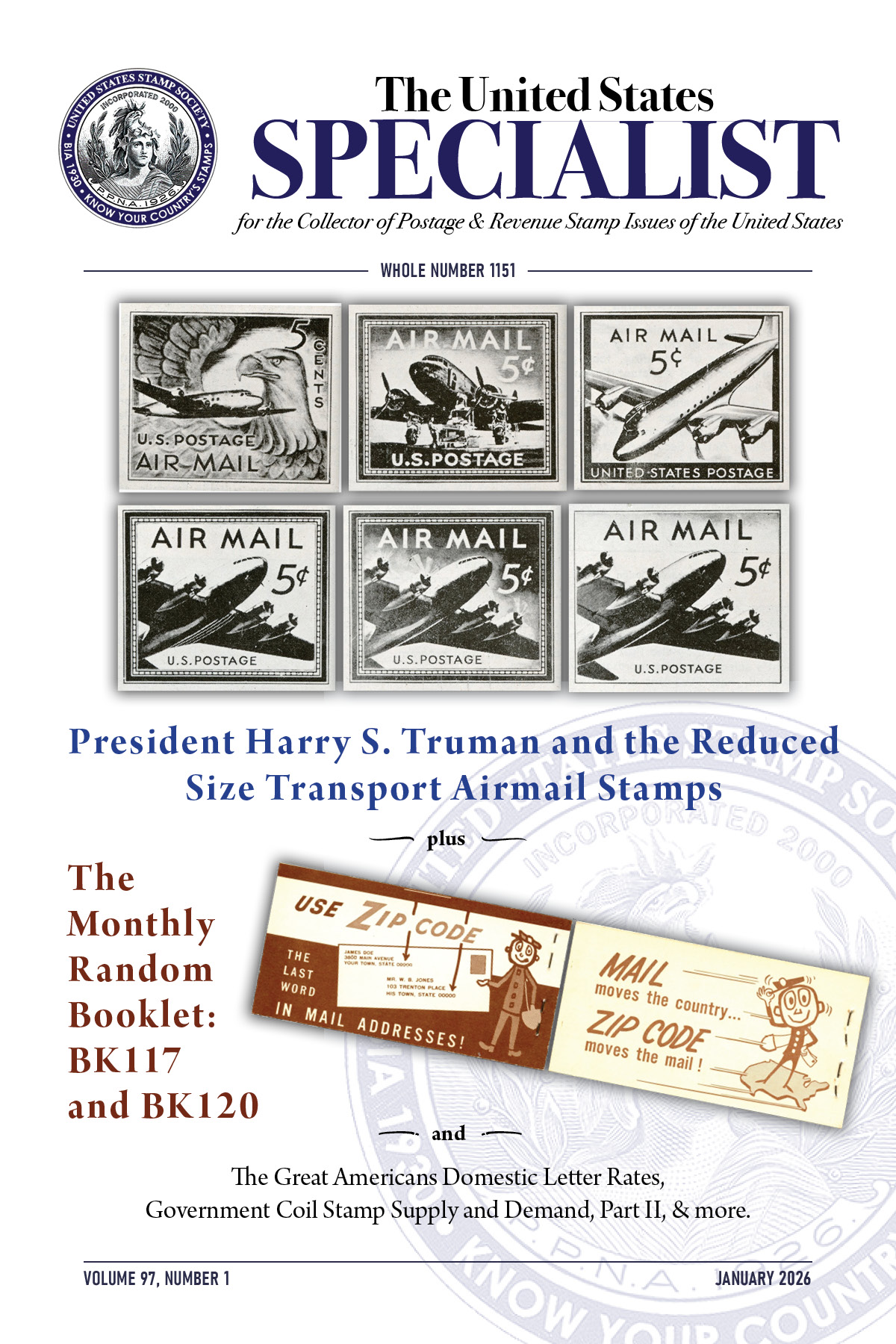 This Month’s Specialist View the Downloadable January 2026 issue of The United States Specialist Download 2026, 2025, 2024 and 2023 Issues of The United States Specialist
